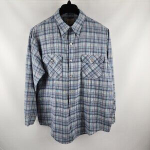 Big Mac Shirt Mens Large Blue Multi Plaid Vintage L/S Button Up
