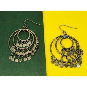Big Multi Moving Circles Silver Tone Vertical Drop Dangle Hook Earrings Womans