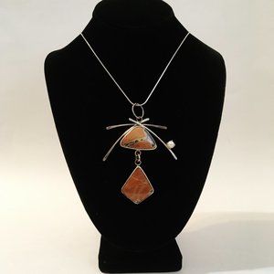 Big Red Canyon Pendant Turquoise Pearl Unique Necklace Sterling Silver Asian New