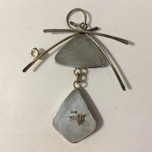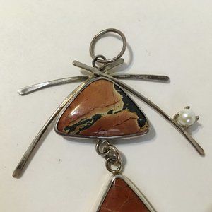 Handcrafted sterling silver pendant with red & floral turquoise in earthtones & single white pearl.
