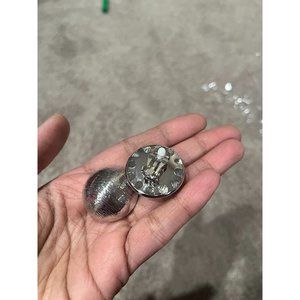 Big Silver stud earrings clip ons dome statement bold large round chunky shiny