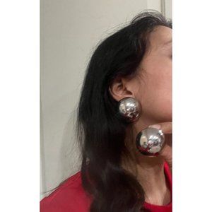 Big Silver stud earrings dome statement bold studs large round chunky mirror