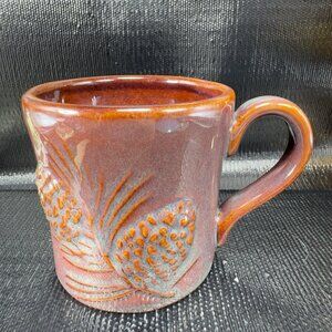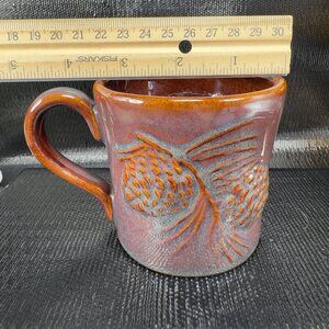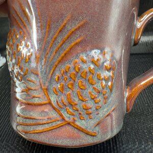 Big Sky Carvers Fusion Pinecone Coffee Mug Cup Brown Heavy Glaze Ceramic Set 2
