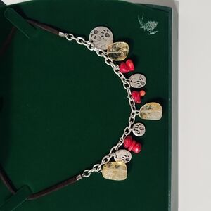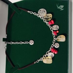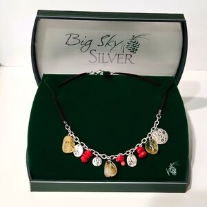 Big Sky Silver Tracks Charm Bear Prints Necklace Red Coral Citrine Rare! New!!