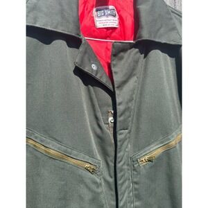 Command attention in this Big Smith Union Made insulated coverall, an iconic piece of American workwear designed for both protection and comfort. The rugged green exterior exudes a sense of durability and vintage charm, ready to tackle any task, while the vibrant red quilted lining provides exceptional warmth without added bulk. Zippers at the chest add a touch of utility and style, with a traditional collar adding a classic finishing touch. Envision wearing it while working in your garage on a classic car, trekking through a rugged outdoor adventure, or making a bold fashion statement at a vintage-themed event.