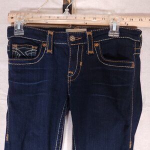 Big Star Liv Blue Jeans Womens 27L Dark Blue Denim Stretch Pants Thick Stitch