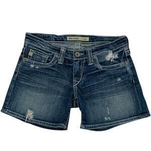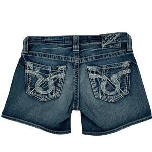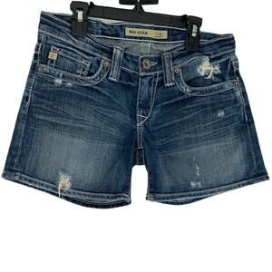 Big Star Shorts Women's Size 2/26 Distressed Whiskers Stitches Buttons Pockets Denim