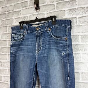 Big Star Union Straight Leg Thick Stitch Distressed Designer Jeans Mens 36 x 30