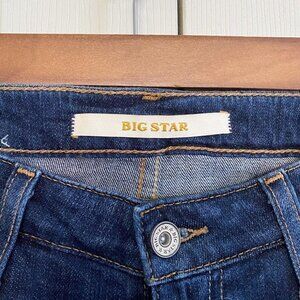 Big Star Women's Dark Wash Skinny Leg Lightly Whiskered Stretch Jeans Size 26R. Excellent preowned condition. Measurements Waist: 30" Inseam: 32" Rise: 8" Offers always welcome! Measurements are approximations taken while hanging