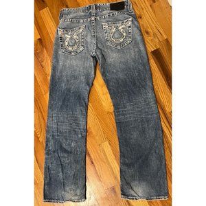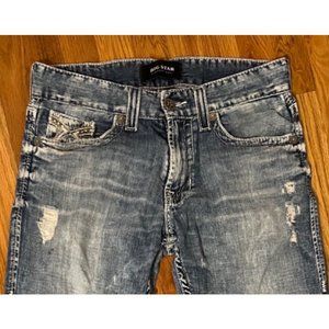 Big Star men’s Pioneer Boot Cut jeans distressed, size 31, embellished back pock