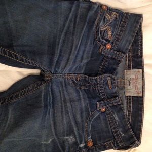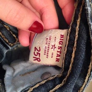 Big Star jeans, size 25R, just don't fit into them anymore. Some wear and tear at the bottoms as pictured but besides that lightly worn