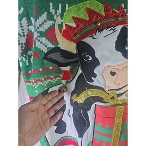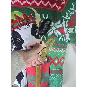 Big & Tall Ugly Christmas Holiday Sweater COW Mens L 42-44 Winter Cozy Party