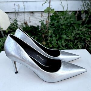 Beautiful silver , pointed toe heeled pumps. Color is absolutely gorgeous. Brand new, perfect for the fall and fits so comfortable. Size 8.5 with 3.5” heel. Shoes have a slight glossy look to them. Comes with original box. Always Savvy On A Budget 🌺