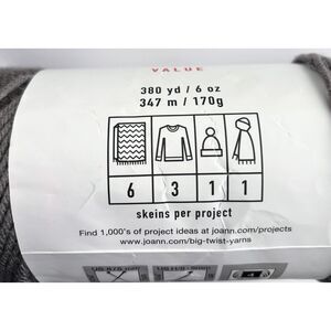 Big Twist Value Yarn, Medium Gray, Worsted Weight, Lot of 3 (Same lot #)