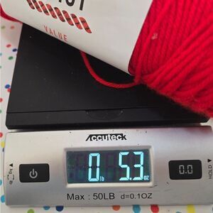 Bundle of Big Twist Value yarn in gray and red. Perfect for knitting and crochet projects.