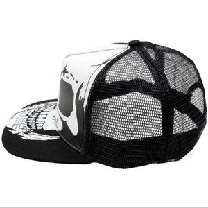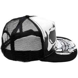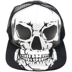 New with tags. Hop on the highway to the netherworld and pick up the Big Skull White Trucker Hat. Featuring a large anatomical skull printed across the front of the hat onto the brim. This breathable mesh hat has an adjustable circumference of 21.5 - 24" (54.5 - 61cm) making it a comfortable fit for most head sizes. Designed in California. Gothic, goth, punk, Halloween, costume HBBSW 25