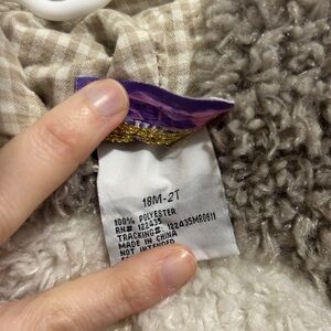 Adorable toddler 2t wolf costume in gray and cream. So good for a little red riding hood/ big bad wolf costume for siblings. Good used condition only because the zipper has a few threads off the bottom of it (per photos). Looks completely normal on though can’t even tell. No stains and smoke free home. This is size 18m-2t but runs 2-3t. My son wore it at 2.5 years old.