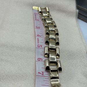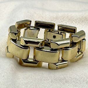 Big bold gold colored link chain bracelet. This is a modern boutique piece. Gold in color . Crossover clasp. No flaws. Fun oversized piece.