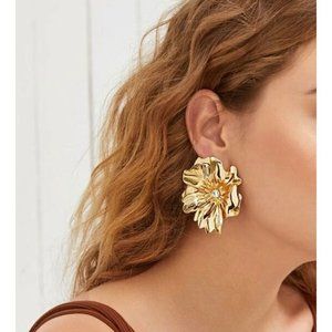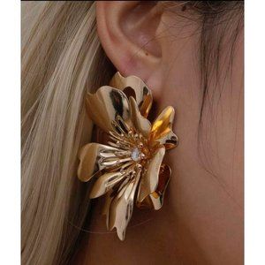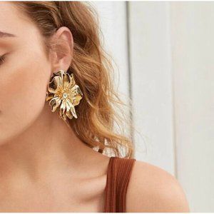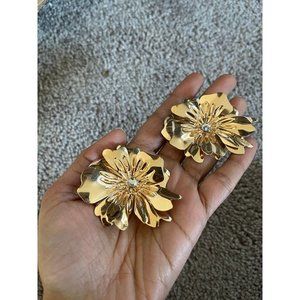 Big gold Flower earrings studs large huge floral statement chunky gold studs