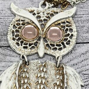 Big owl pendant double chain, necklace free bracelet boho festival statement