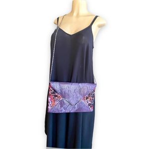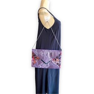 Big Buddha Purple Snakeskin & Sequin Large Clutch Purse