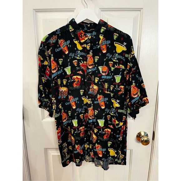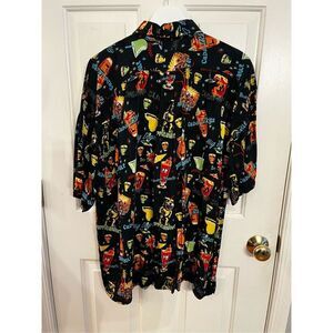 Big Dogs Black Dog Drink Menu Short Sleeve Rayon Button Down Shirt sz XL EUC