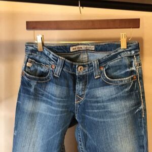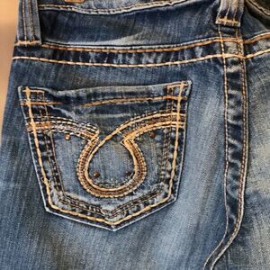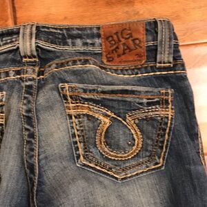 This is a pair of Big Star brand jeans. These have two tone stitching throughout. They are very similar in look to True Religion Jeans. Purchased from Nordstrom, excellent used condition. Please see photos for measurements and fabric composition đ