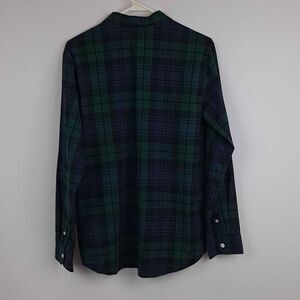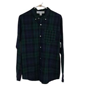 Blue and green plaid button front shirt with long sleeves. Boys size XXL (18). Button down collar, contrasting chest pocket. Fabric is 97/cotton, 3/spandex. Measures 19" pit to pit, length is 28".