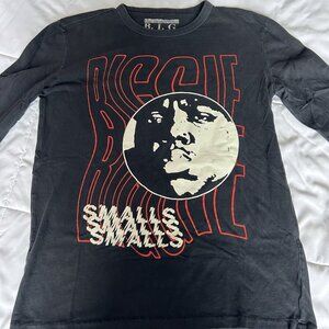 This product is a Men's small black graphic long sleeve featuring Notorious BIG, a legendary figure in the Hip Hop music scene. Unisex adults!