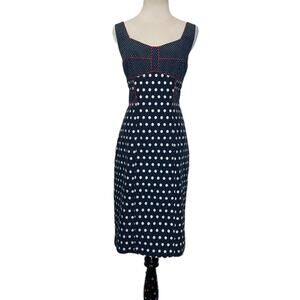 Bigio collection Blue sleeveless polka dot sheath blue lined dress size 10