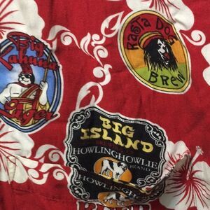 Bigs Dogs Red Hawaiian Beer Drinking Brand short sleeve party time Aloha shirt