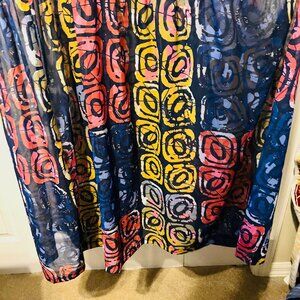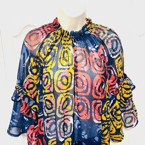 Bijelly Couture Long Maxi Dress-Large-Sheer-Ruffles-High Neck-Geometric-Colorful