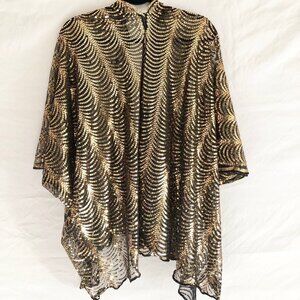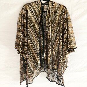 Bijorca Gold Sequin Short Kimono Scallop Wave Pattern Size OS