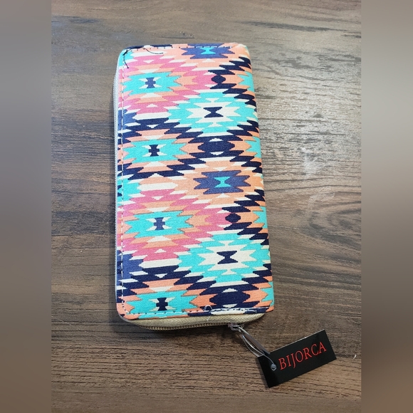 Stylish Bijorca wallet featuring a vibrant multicolor pattern. Perfect for adding a pop of color to your accessories collection.