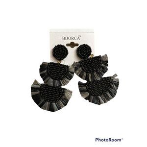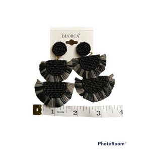 Bijorca Womens Black Beaded Feather Chandelier Earrings Size OS