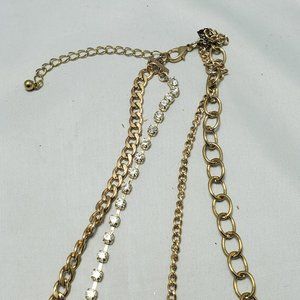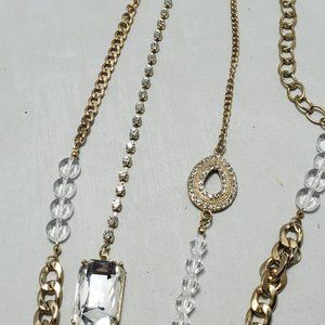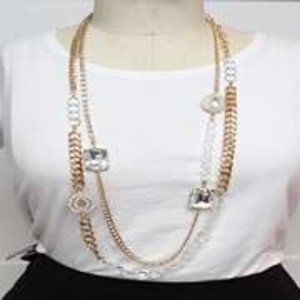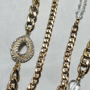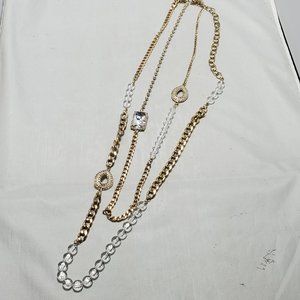 Bijou 36 inch 2 row clear beads with gold link chain necklace