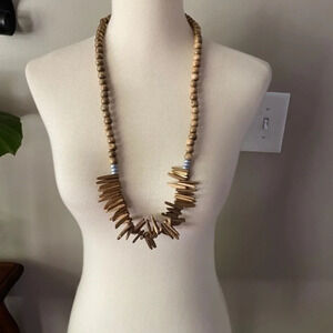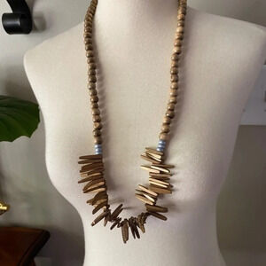 Add a touch of whimsy to your style with this island-inspired necklace sporting natural elements and a generous drape.