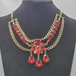 Bijou Drive 3 row gold chain with red crystal stones necklace