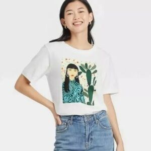 Bijou Karman Terrazo Short Sleeve Graphic T-Shirt Cactus Print New