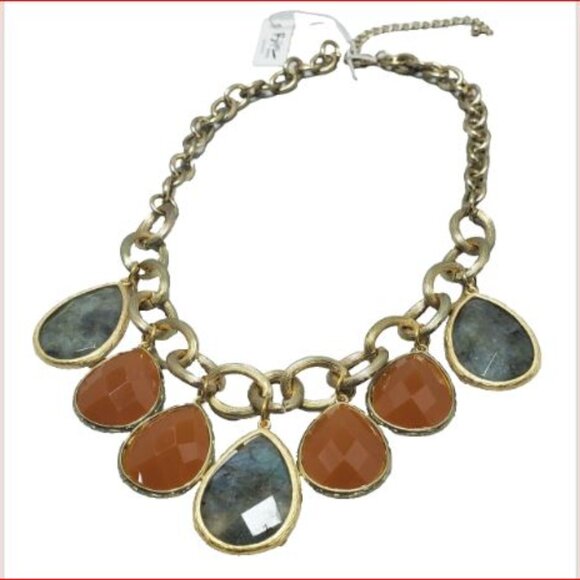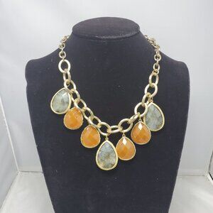 This elegant 18-inch gold chain necklace, complete with an adjustable extender, is the perfect blend of sophistication and charm. The design features two teardrop-shaped pendants in varying sizes—1 inch and 1.5 inches—for a striking yet balanced look. Larger teardrops are a pale, translucent blue, exuding a soft, ethereal glow, while smaller teardrops are a bold, opaque orange, creating a beautiful contrast. The intricate interplay of colors and shapes makes this piece an eye-catching accessory, perfect for adding a touch of elegance to any outfit.