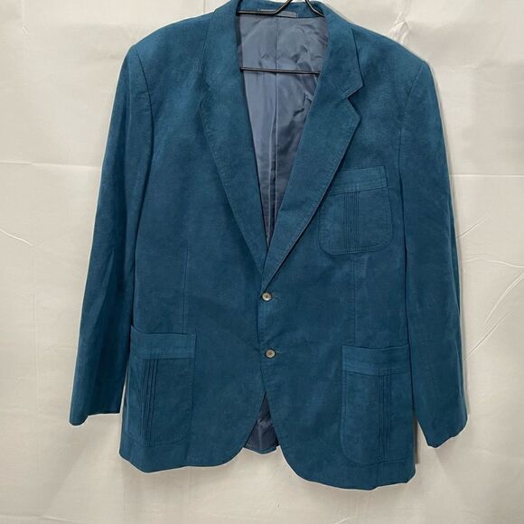 Beautiful vintage blue blazer in excellent condition. Has detailed pockets. No size, but listed as a large based on measurements. Feel free to ask for additional measurements