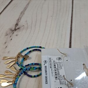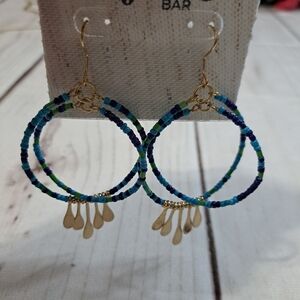 Bijoux Bar Beaded Hoop Earrings in Blue, Green and Gold Tone