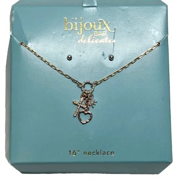 Bijoux Bar Delicates 16" Necklace Cross Heart Star Charm 2pc Jewelry Set NWT