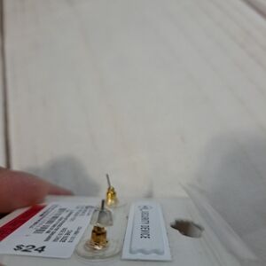 Elegant earrings from featuring a stunning gold and iridescent design. Perfect for adding a touch of glamour to any outfit.