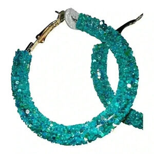 Bijoux Bar Turquoise Beaded Stainless Steel Hoop Earrings