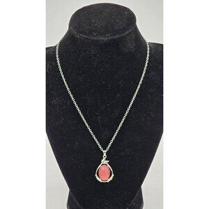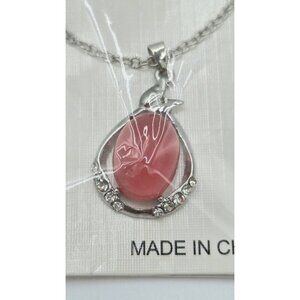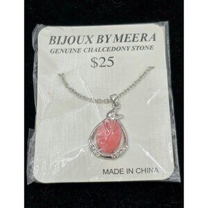 Bijoux By Meera Genuine Pink Chalcedony Stone Pendant w/ Silver Tone Rolo Chain