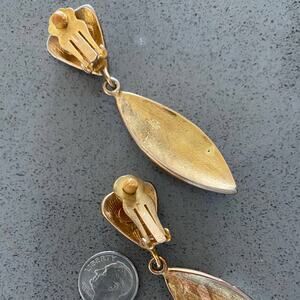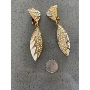 Bijoux Designs New York Vintage Dangling Clip Earrings with Rhinestones & Enamel