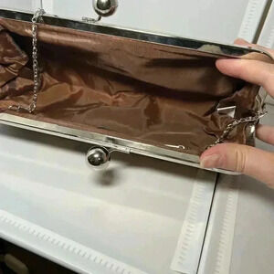 Bijoux Terner Brown Women’s Handbag Clutch Faux Leather Silver Chain Purse