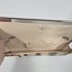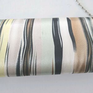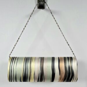 Bijoux Terner Clutch Purse Evening Hand Bag Multicolored Striped Fabric Silver