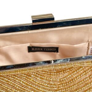 Bijoux Terner Pattern Bead Satin Kiss Lock Chain Clutch Purse